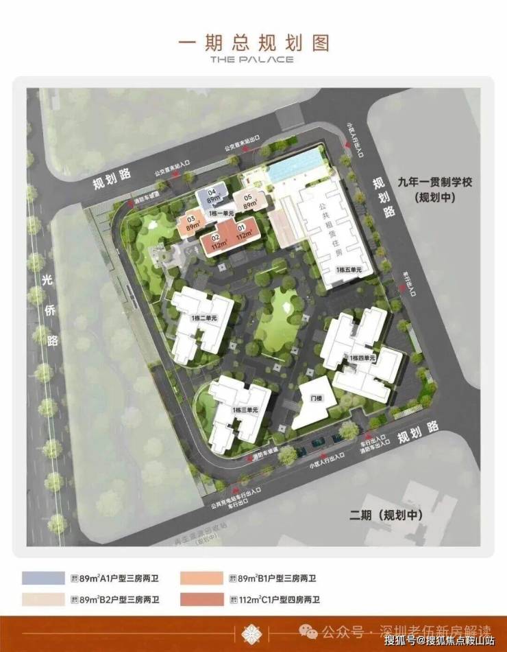 首推的是01地块,共由5栋总高31-38层的住宅组成,其中1栋1单元住宅33F,1栋2/3单元住宅31F,1栋4单元住宅38F,1栋5单元公租房32F,小区地下车库配建有公交首末站。