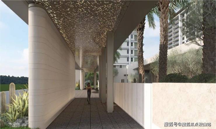 •一进:酒店式归家 | 近 70 米长弧形落客门廊,围合仪式感入口前院