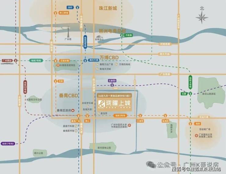 距项目2站的番禺广场,番禺区府所在地,集合番禺的行政、交通、教育、医疗、文化中心,是与北万博平齐的番禺南中心。