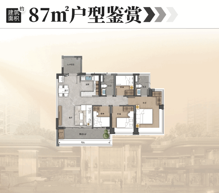 建面约87㎡五空间,不用大户型也能改善