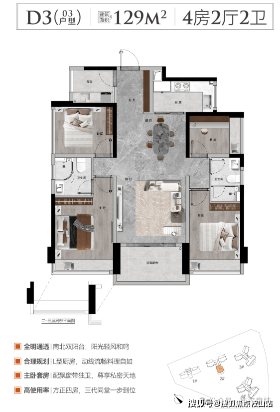 2⃣ 栋户型:125-129 平方