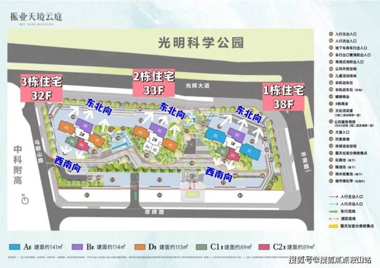 总栋数及楼高:3栋,32-38层。