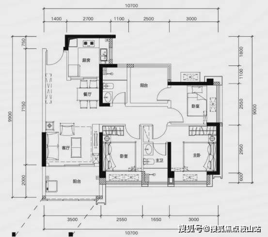 89㎡四房两厅两卫,同等面积多一间房,二孩家庭也能三代同堂。