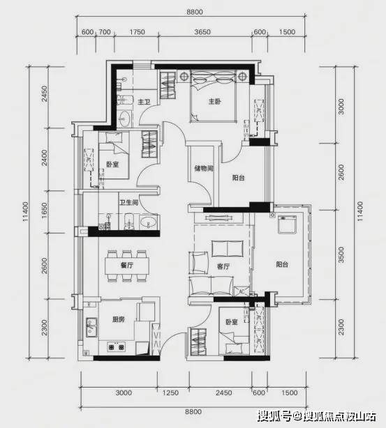 ✅ B06 户型:约109㎡ 阔绰四房两厅两卫: