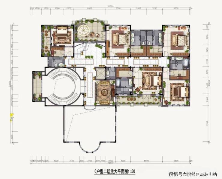 别墅二层可以设置5房4卫和超大活动室,客房还配有景观阳台;主人房套房内衣帽间、卫生间等功能面面俱到;配设开间约6.5米的空中露台,挥洒时光,静享人生。