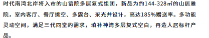 占地面积约13.8万㎡,建筑面积约35万㎡,容积率1.99。规划总户数约2300户,共分10期开发,其中1-7期洋房已建成交付,8-9期别墅区在建,10期综合体公寓在建。产品涵盖洋房、别墅、公寓、商业于一体,依山而建,为神湾中心最大的综合社区。