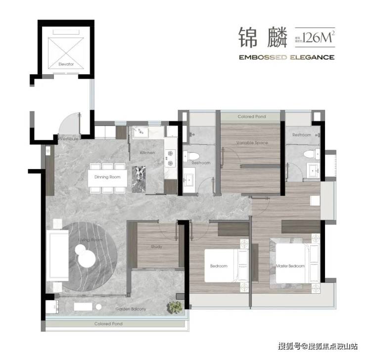 ①建面约126㎡奢阔LDKG+X户型 尊贵端户 奢厅入户