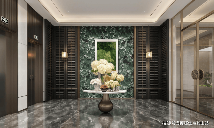 宝格丽酒店同款落客区,奢石归家大门+酒店式入户前厅,拉满仪式感;