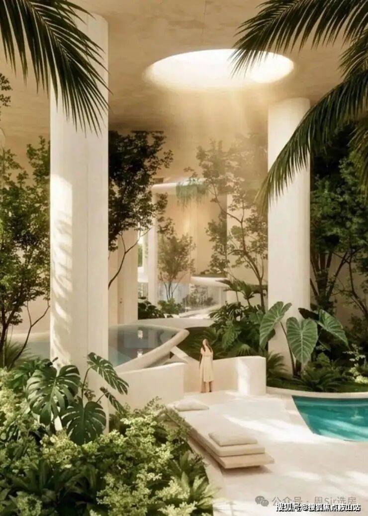 内C在体育场馆内侧形成相对安静私密的区域。利用18米的高度优势及微高差处理,设置超级挑高岛式落客区,实现车流快速归家和酒店式归家体验,兼顾城市交通效率与豪宅私密感。