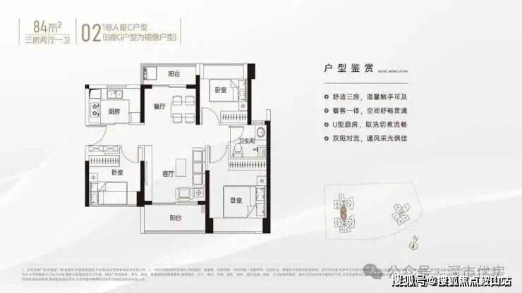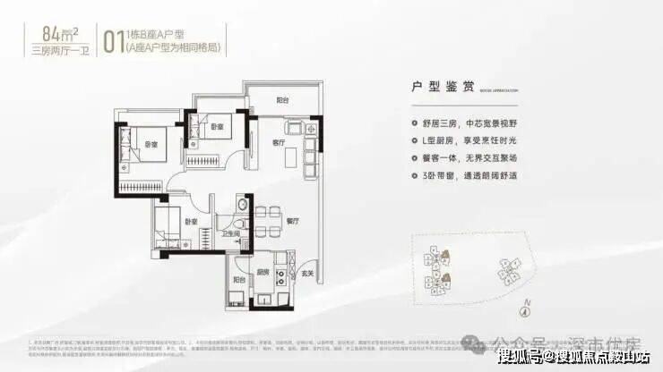 84㎡的3房2厅1卫,折后总价186万起折后单价2.2/m²起。