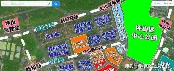 财富城2期所在的区位是整个坪山最核心的地段,汇聚了高铁+14/16号线双地铁+坪山实验学校+坪山中心公园+坪山天虹商场+坪山区政府+坪山体育中心+坪山图书馆,文艺馆等等,所有的市政配套基本都集中在这里,并且财富城2期也是该核心区域内唯一在售的新盘。
