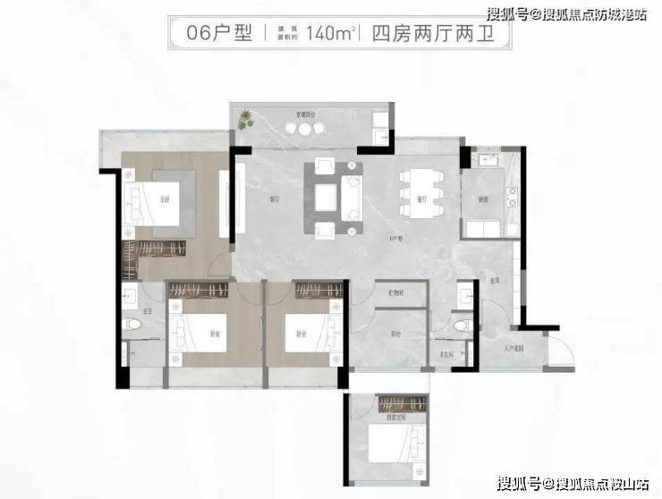 140方四房横厅设计,带入户花园,厅出6米观景阳台,客厅实现观景、生活两不误,主卧带有270度大飘窗、衣帽间、独立卫浴,兼顾实用与舒适。