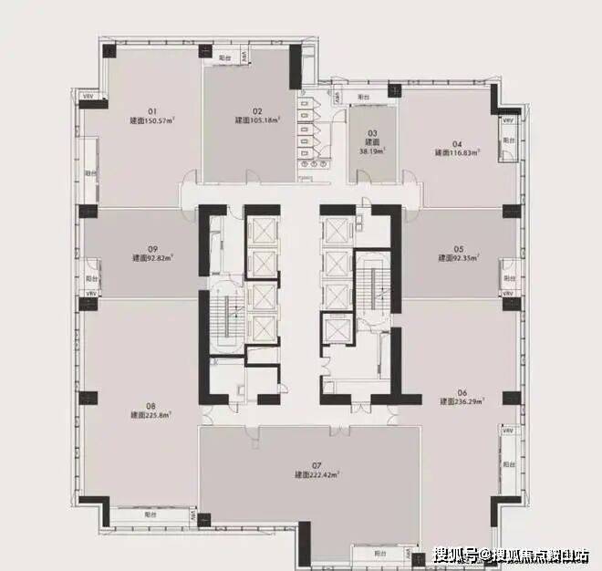 小区为空中花园,封闭式管理。公寓负一楼至四楼为商业,住宅负一楼至二楼为商业。负二楼至负四楼是停车场。