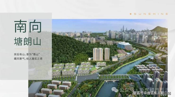 项目南依塘朗山,北面西丽湖,西临大沙河,推窗观山,临街瞰河,不仅营造了豪宅级居住体验,更是南山绝佳风水之地。