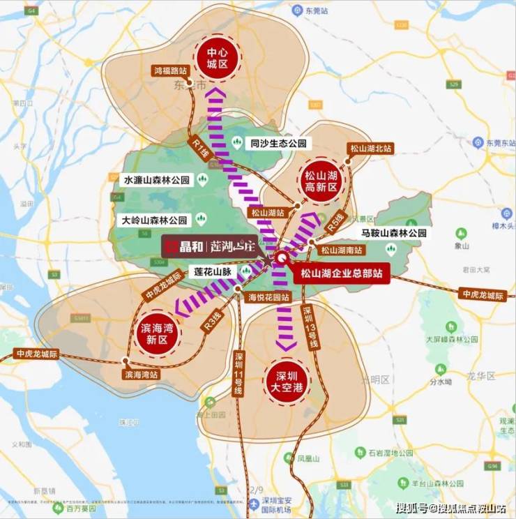 住在莲湖山庄,出行也是一大优势,距离规划中的松山湖企业总部仅700m,该处汇集东莞R3线、R5线和中虎龙城际线三条线,其中东莞R3线将接驳深圳地铁11号线。