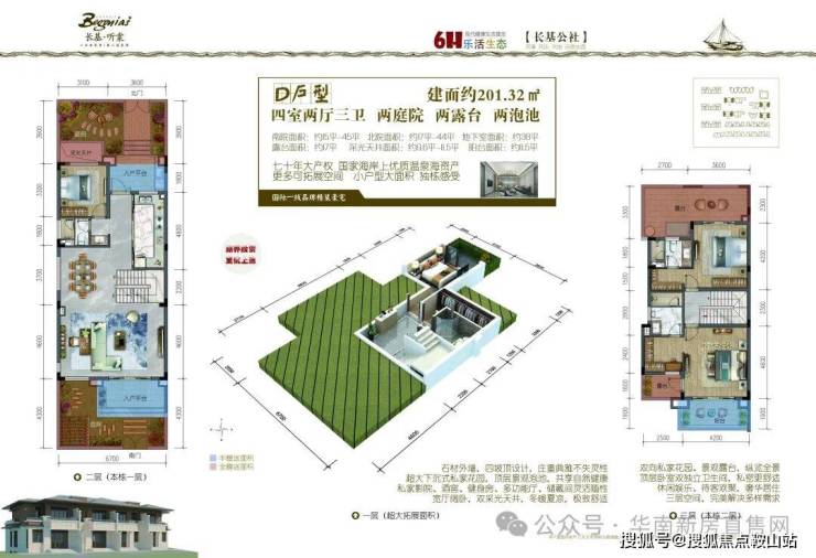 四联排别墅:201-203㎡(赠送面积约:108-128㎡)