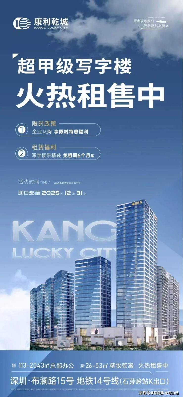 康利乾城- 深圳市龙岗区,地铁14、17号线石芽岭K出口,聚合总部基地、精妆乾寓、企业会馆、商业中心、数字艺术馆、体育馆、星级酒店、运营中心八大功能板块,打造一座艺术生活无界、社交工作同频、创享活力同在、健康休闲共融的„总建面约40万㎡湾区数字产城生态圈。