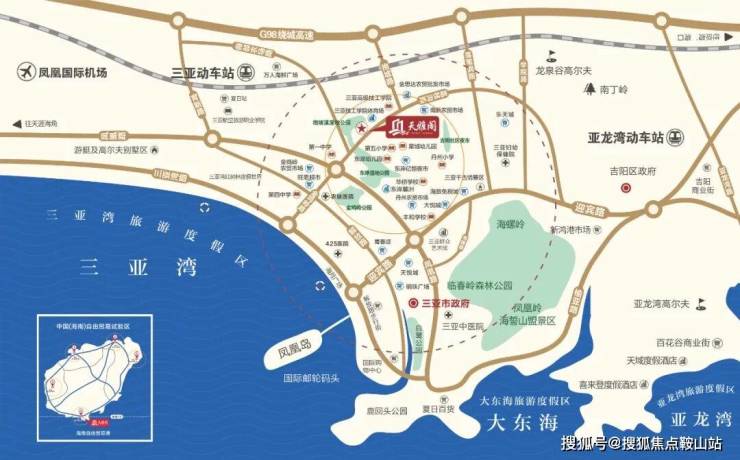 约3公里即达三亚高铁站,约4公里快速接驳环岛高速,约12公里直达凤凰国际机场,形成高效便捷的立体交通网络。