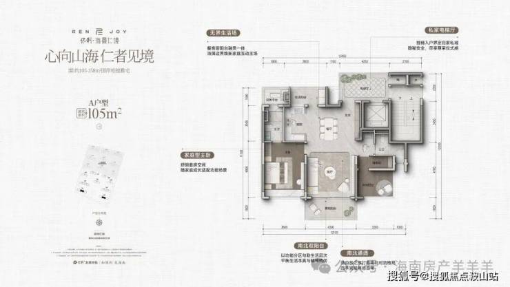 海晏仁境深挖内部空间潜力,从“度假式栖居”的精神体验维度,将内部配套规划为悦己、社交、亲子、生活四个方面,串联“从身安到心安”的度假生活脉络。