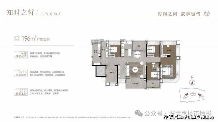 196平户型,做了双主套,客厅、卧室、阳台等开间尺度也比同面积段产品更大。这次的样板间,特别邀请梁志天团队设计,不仅展现了户型亮点,细节呈现也很震撼。其设计灵感借鉴爱马仕等奢侈品创意,色系以原木风为主,风格非常清新典雅。还有一个非常厉害的点,就是样板间内多次出现弧形圆角设计。吊顶造型、主卧270°飘窗,再到洗手间墙面等等地方,都有弧形元素,视觉体验非常丝滑。