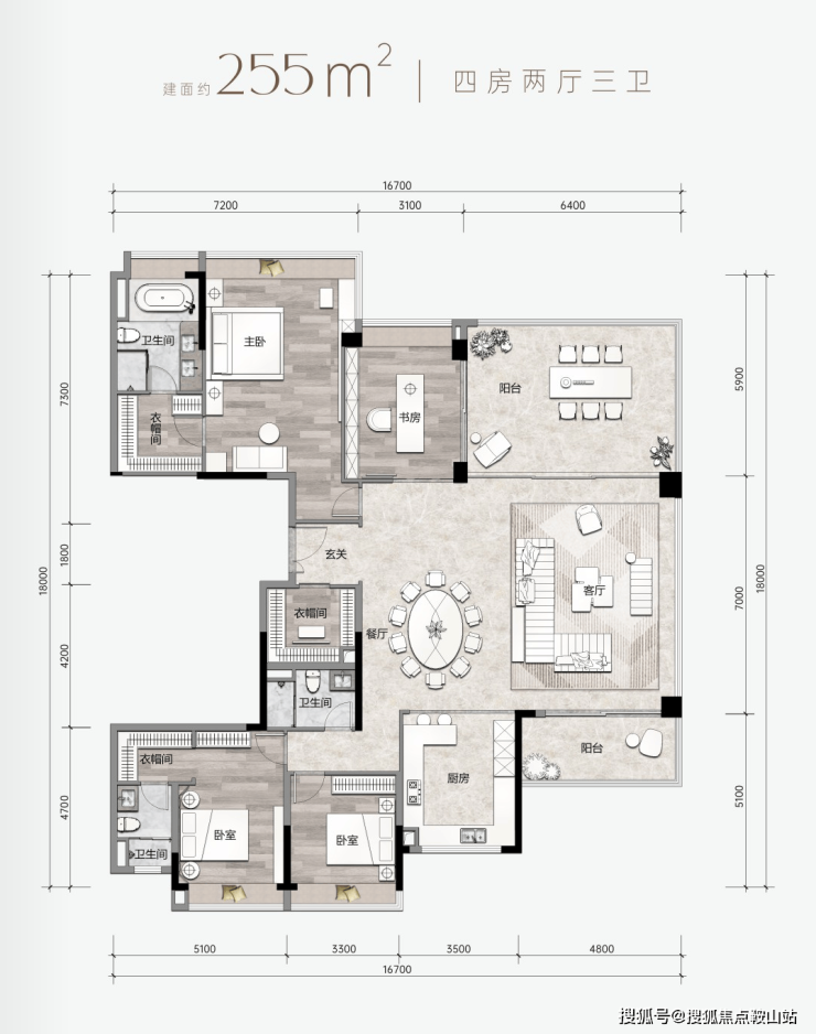 保利首铸鹭湾的精华,在建面约255㎡四房三卫楼王户型展现得淋漓尽致。