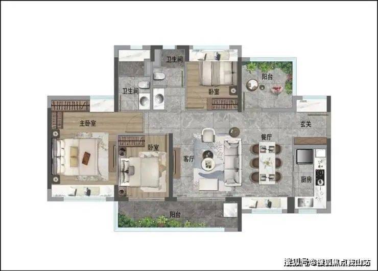 • 3房2厅1卫,满足家庭人口成长的基本需求。