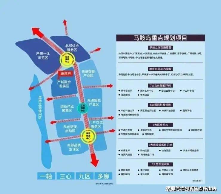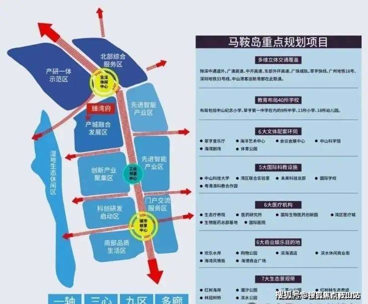为了更好承接来自深圳的产业外溢、人口流入,马鞍岛高起点规划了“一轴、三心、九区、多廊”的发展布局,40所学校、13大城市公园等72大重量级顶配,意在打造集智造产业、科技金融、健康医疗、生态居住功能为一体的智创滨海新城。