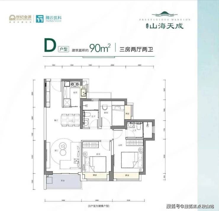90㎡的3房2厅2卫,设计的是经典竖厅格局,客厅3.4米开间,餐客厅一体化,三开间朝南,3个卧室分别是3米/2.9米/2.5米的宽度,L型厨房,