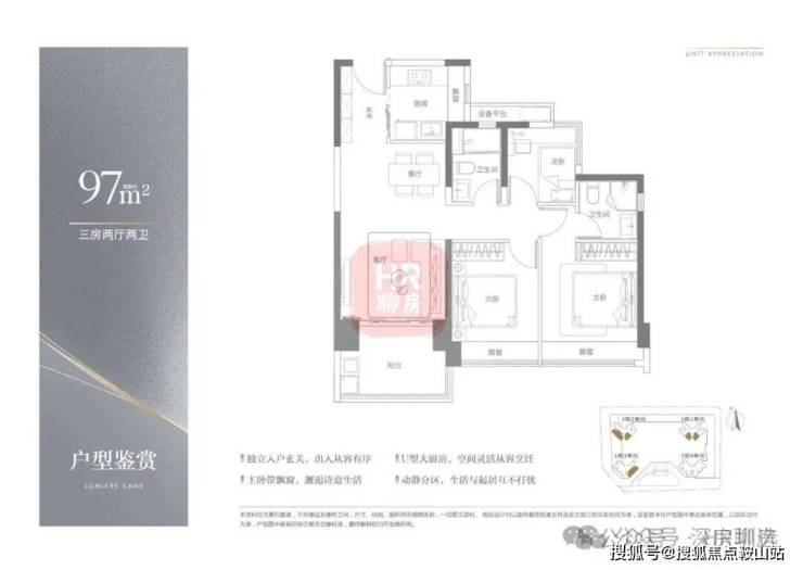 【97平米3房2厅2卫】动静分区,3开间朝南,核心园林景观,高区无敌视野;