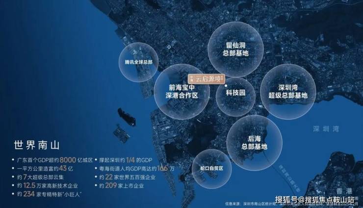 中海云启源境位于深圳南山区与宝安区交界处的南头片区,是深圳市区域发展格局中的战略要地。项目地处南山"黄金三角"区域:东接科技园产业高地,西临前海自贸区,北靠宝安中心商圈,处于"一核四区"几何中心位置。
