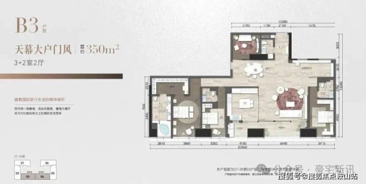◎建面约350㎡ 3+2室2厅,天幕大户门风