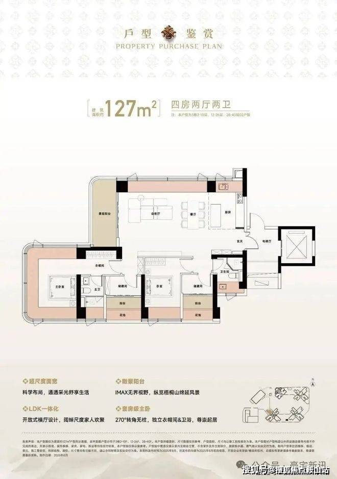 真纯粹:约127-300㎡新规改善大宅,四房占比超87%,主力户型专梯独户,尽享纯粹圈层生活;