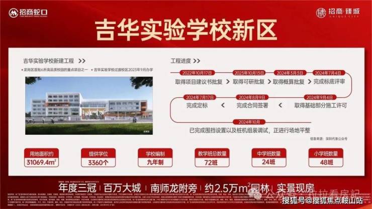 臻城幼儿园、吉华实验学校(九年一贯制)在旁,周边汇聚南京师范大学附属龙岗学校(公办九年制)、布吉中学(省一级)等多所学校。