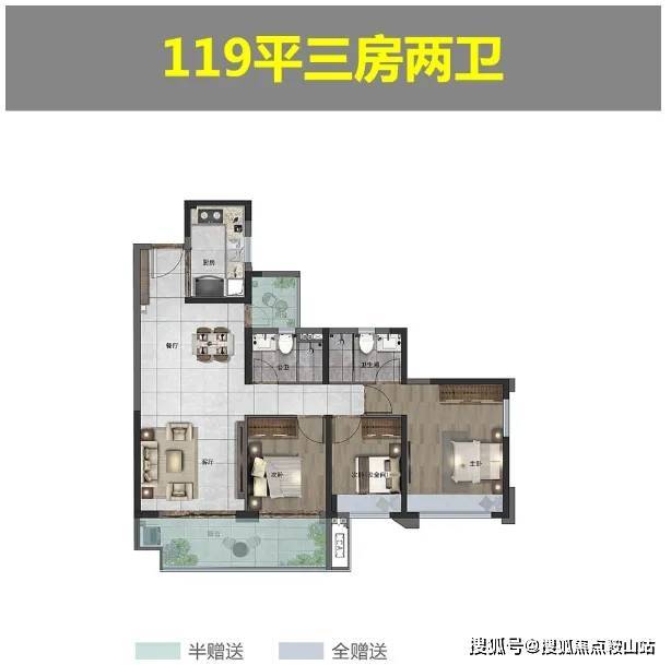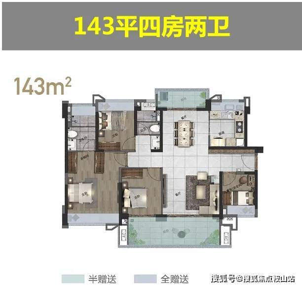 •【产品面积】: 约105-119㎡三房、约130-143㎡四房