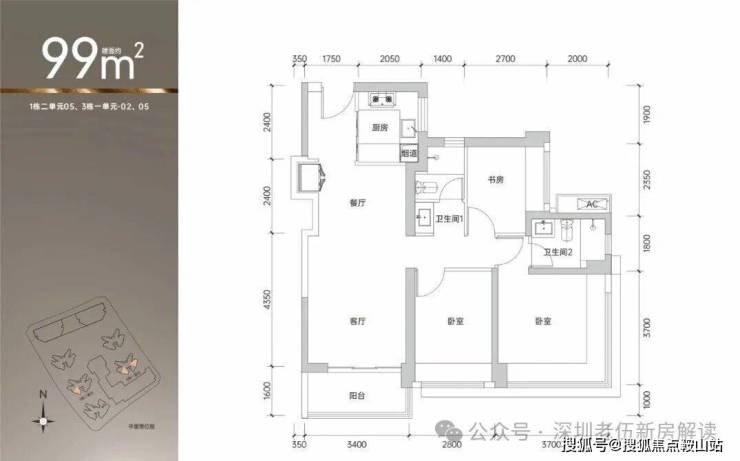 01户型:88平(南北通透)单价39900-40800,总价351-359万。