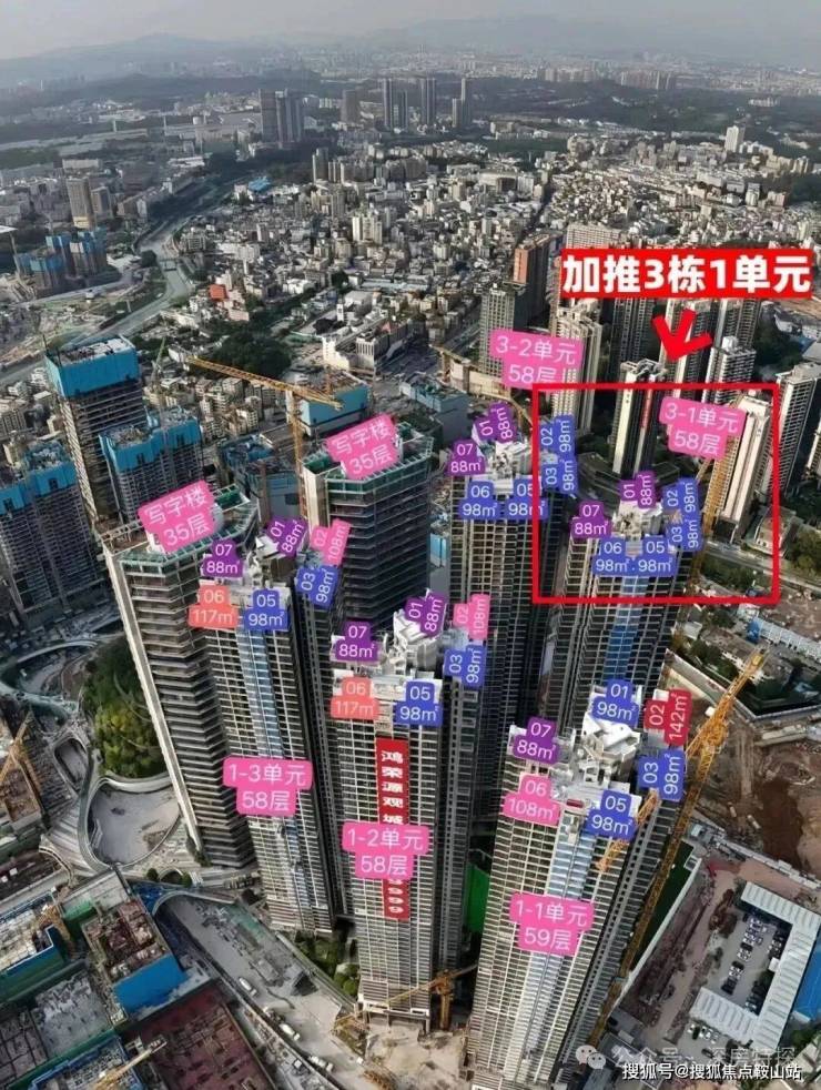 本次首推的08地块,备案名:未来平方云山府,由鸿荣源集团打造,共分3期建设,总占地面积约2.73万㎡,总建筑面积约37.41万㎡,计容建筑面积约27.51万㎡,容积率9.23,绿化率32.01%,共由5栋58-59层高住宅组成,其中1栋1单元住宅59F,1栋2/3单元住宅58F,3栋1单元/2单元住宅58F,4栋1/2单元写字楼35F,2栋是1所18班幼儿园,配建有公交首末站。