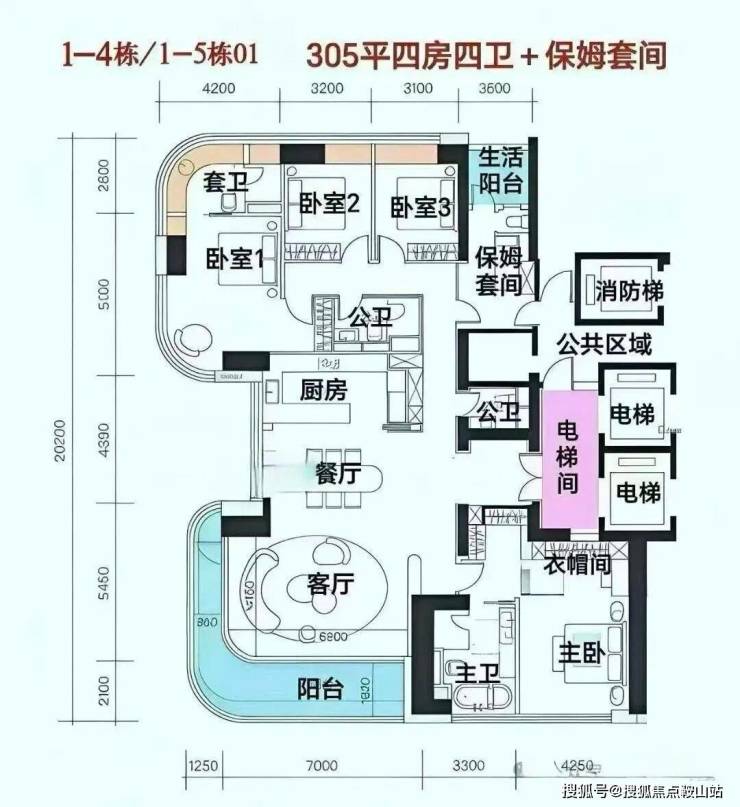 1栋D座&E座:约305平方米户型(部分资料显示为285㎡),层高3.5米。D座总高182.77米(49层),E座总高161.77米(43层),均为3梯2户设计。这些户型几乎覆盖全方位景观,从次卧至中厨至客厅到主卧,全线海景。