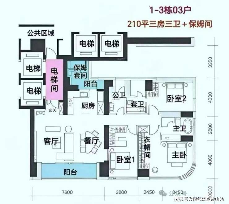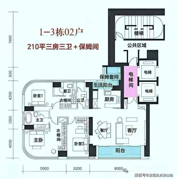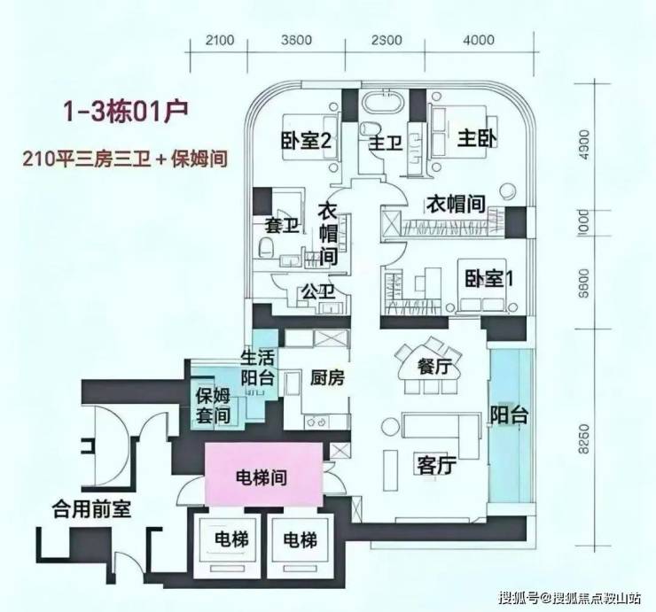 1栋C座:约210平方米户型(部分资料显示为195㎡),层高3.3米。该栋楼总高192.42米,共54层,采用4梯3户设计。属于项目的“入门级”产品,但依然保持高端品质。
