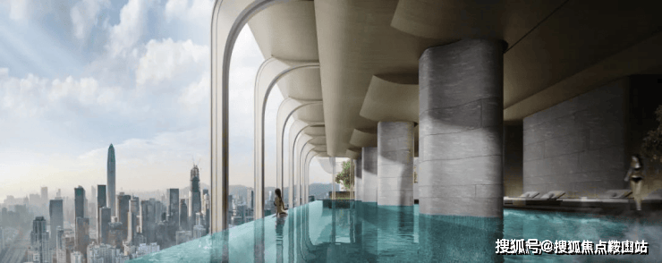 云端会客厅——全国首创约150米高空会客厅,约150米高空,打造了一处连接A、B、C三栋塔楼,面积约6000㎡的业主共享云端会客厅。涵盖无边际恒温泳池、宴会厅、天际健身房等休闲运动功能,使业主在家即可享受如五星级酒店会所配置,方便、舒心。