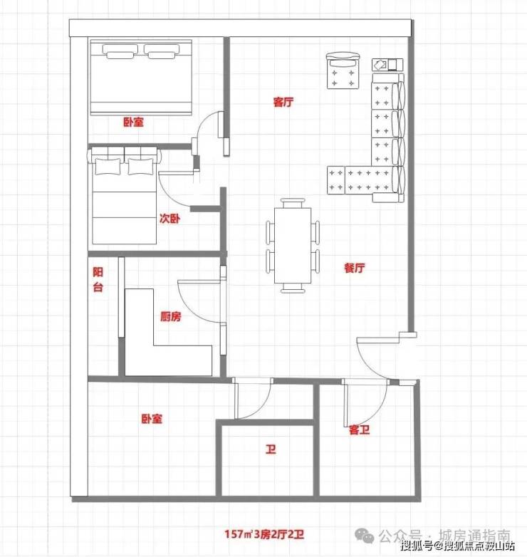157平方米 三房二厅二卫