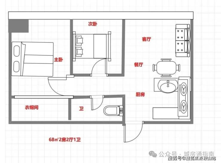 68平方米 二房二厅一卫