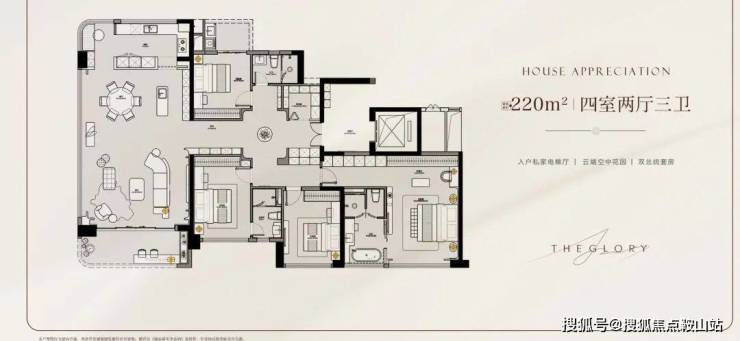 阳台占比25%,仅次于阳台占比30%的保利南方面粉厂,是天河唯二的超新规地块。虽然紧邻珠江新城,但终究偏离了核心区域,外部采用大量玻璃幕墙+冠顶设计,融合古建筑与现代化审美,顶奢石材搭建的高端会所,330米中轴庭院和云端空中花园等公区设计立体。