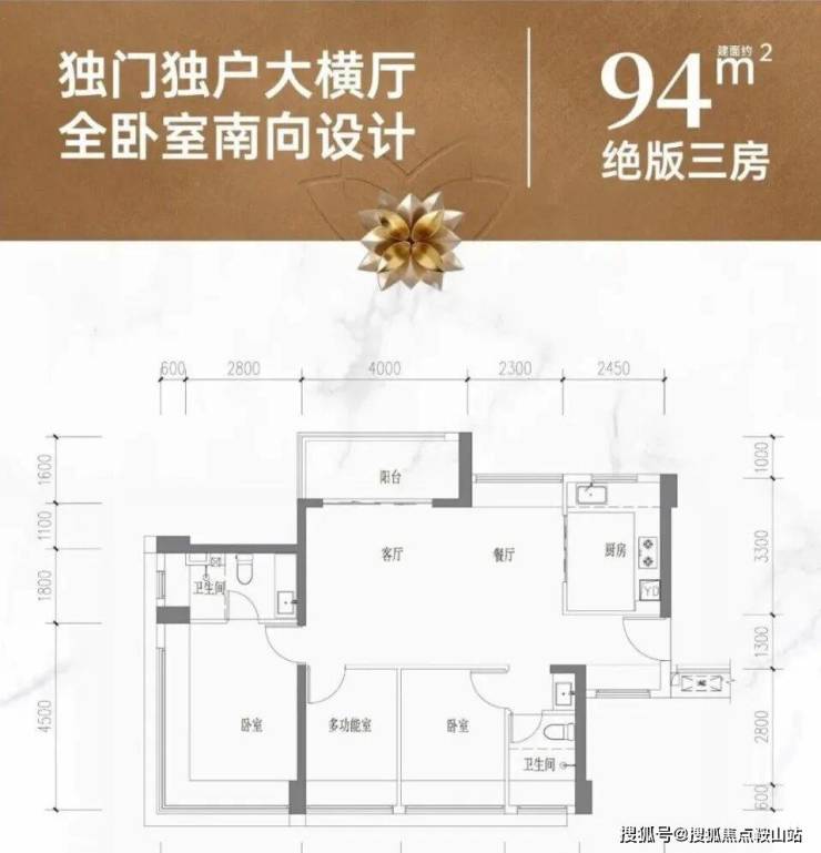约84㎡南向山湖海景,最低门槛上车3房2卫,总价约358万起