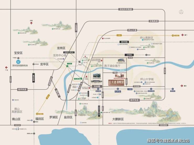 2高铁:厦深铁路坪山站、深汕高铁坪山站(在建中)约7KM,半小时直达深圳CBD。