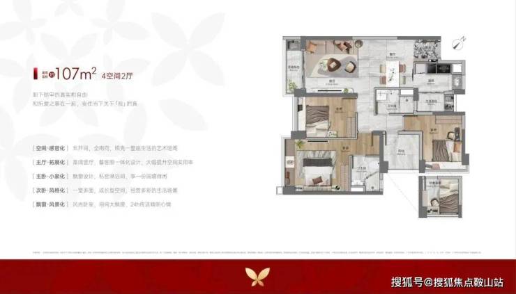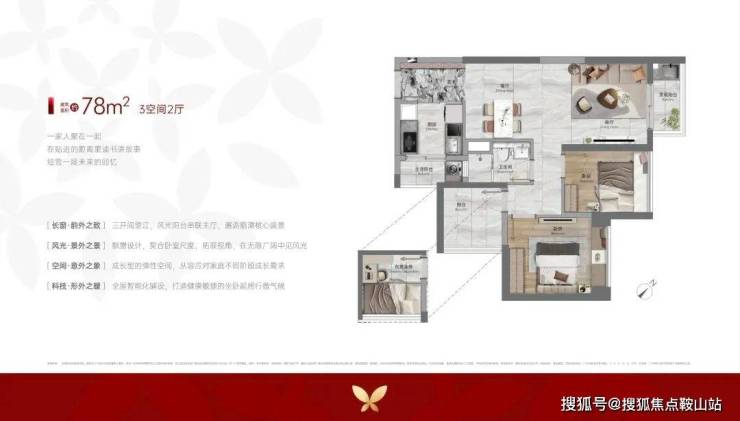 建面约98㎡一步到位四房,是白鹅潭百平内罕见配置,“0过道”高效格局,四开间望江+8个采光面,在清晨的江风与阳光里,从容开启三代同堂的温馨日常。