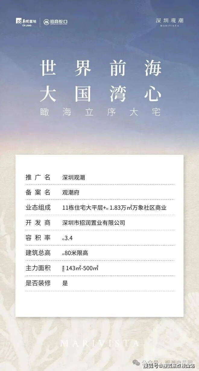 2025年8月土拍新晋地王→宝安中心区南街坊头排海景【观潮府】销售已经招聘完毕且上岗!官方给到节点,将于3月底进行入市操作!2027年底项目即可交付!首推5-6-7单元三栋楼182套143-168-190-254-265㎡,使用率约100%新国标产品!3梯3户及2梯2户梯入户!东南看海景为主,真正的与时间抢跑!