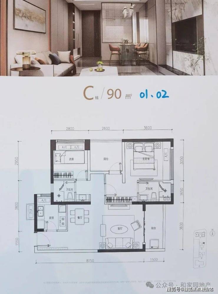 C座01、02户型:90㎡ 3房2厅2卫
