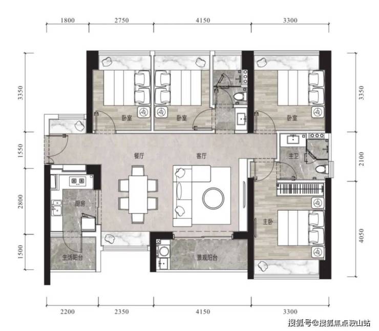 🟤舒阔4房 建面约143㎡4房2厅2卫