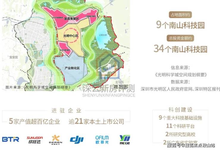 深圳光明区,规划为世界一流科学城和深圳北部中心,光明科学城为广深港科创走廊重要节点,以“一心两区”为蓝图,定位打造“中国新硅谷”,战略地位堪比硅谷之于美国旧金山、张江之于上海浦东,聚集24个创新载体建设,强势驱动科技国际化进程。