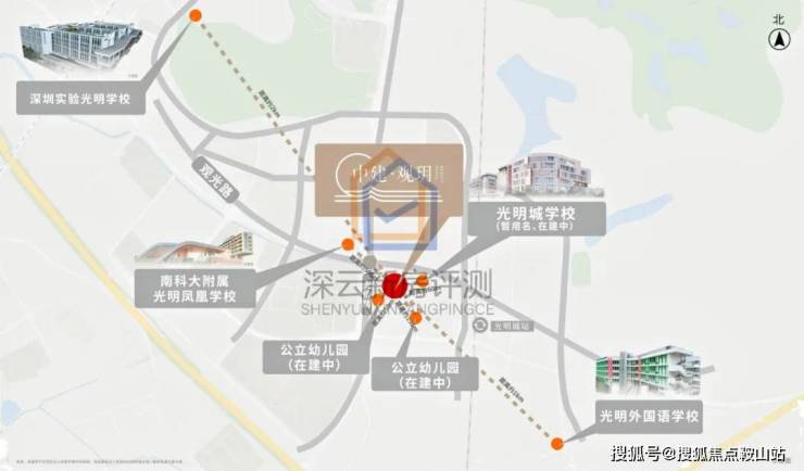 项目简介: 中建·观玥名邸位于光明区凤凰城板块的光侨路与观光路交汇处,旁边就是深圳实验学校科林部,紧邻光明高铁站以及虹桥公园。